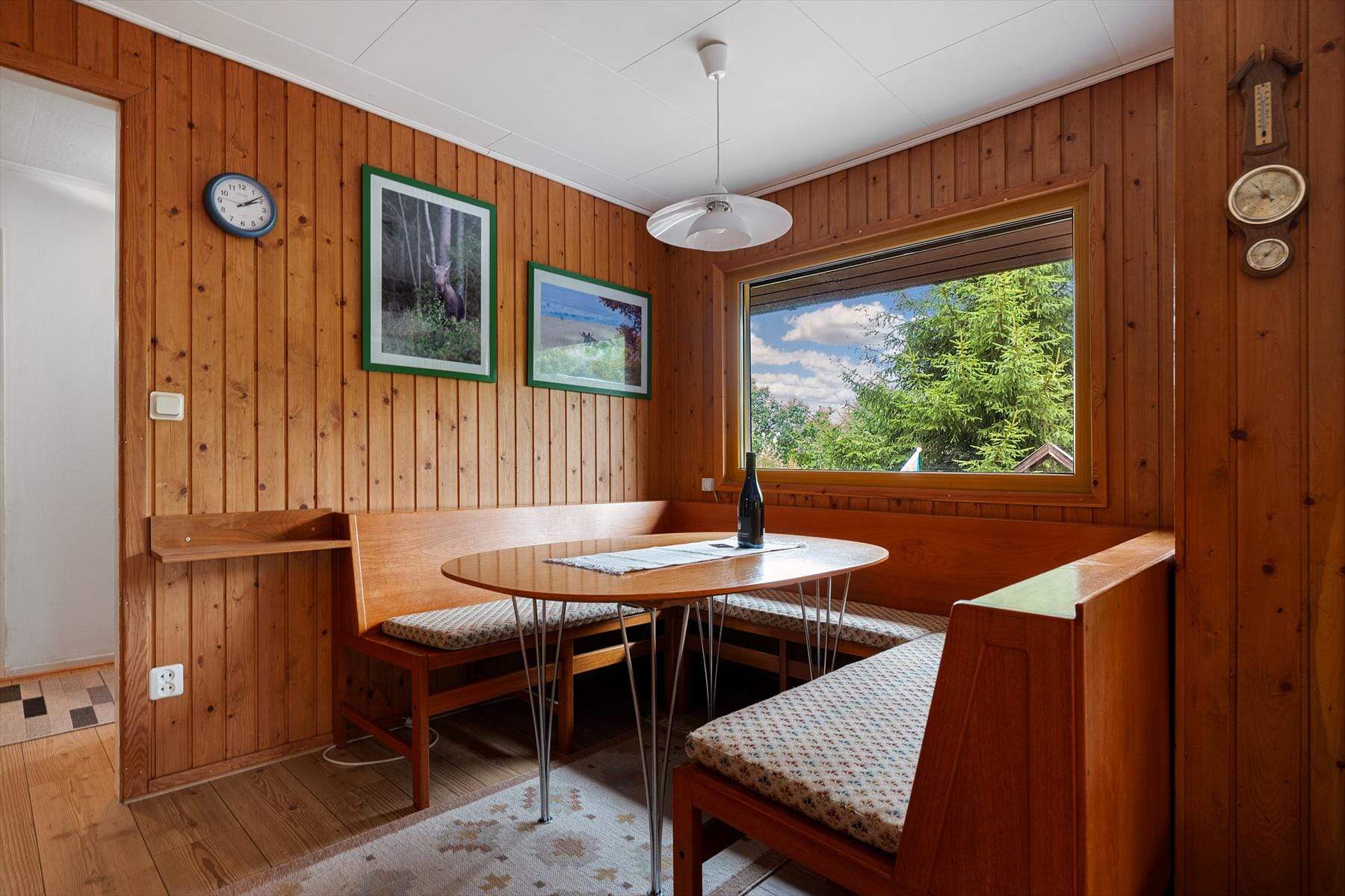 Esstisch mit Panoramafenster zum See