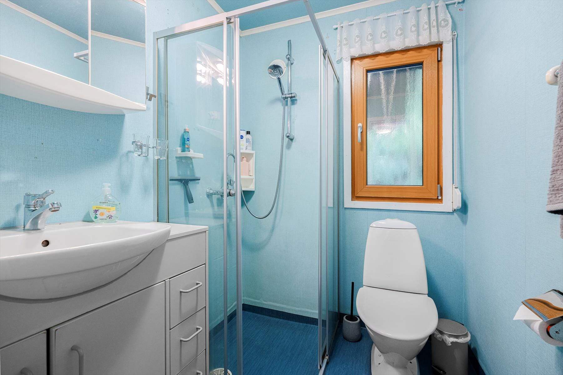 Mitten in der idyllischen Natur am Ufer des imposanten Sees Kalvsjön gelegen steht das zweistöckige Haus Sperlingsholm auf einem 6.500 m² großen Grundstück. Von der großen Holzterrasse im Obergeschoss aus können Sie den See hinter den Bäumen glitzern sehen. Hier genießen Sie die förmlich schon hörbare Stille und die direkte Nähe zur Natur. Die Badestelle ist seicht und steinig, jedoch erreicht man schnell tieferes Wasser. Es gibt einen Steg, um mit dem Boot anzulegen oder auch zum Sonnenbaden. Zum ausgedehnten Baden empfehlen wir den Sandstrand Lommaholmen, welcher mit dem Boot in ein paar Minuten erreichbar ist, oder die weiteren Sandstrände oder Inseln am und im See.